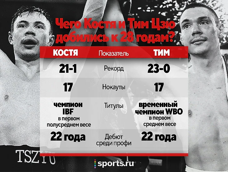 Чего отец и сын достигли к 28 годам? Рекорд Кости Цзю в профессионалах – 21-1 (17), плюс ничейный поединок с Леонардо Масом, позже признанный несостоявшимся. Рекорд Тима – 23-0 (17). Удивительно равная статистика по количеству боев и побед нокаутом. Конечно, у Цзю-старшего на тот момент уже было поражение от Винса Филлипса, но он становился чемпионом по версии IBF. У Тима боев за полноценный титул пока не было.