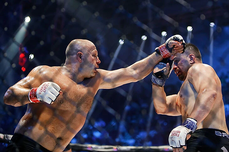 Первый бой закончился слишком быстро. Бейдер нокаутировал Емельяненко левым хуком. Когда-то его крепкая челюсть, которая помогла выстоять в боях против Мальдонадо и Мира, перестала спасать.