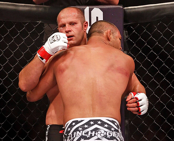Поединок с Хендерсоном был похож на драку в баре, в которой Федор практически победил – отправил Дэна в нокдаун, начал добивать, но тот встал, забрал спину Емельяненко и ударил с неожиданного угла. После этого Федор сам оказался в нокдауне – Хендерсон добивал, а потом рефери остановил бой.