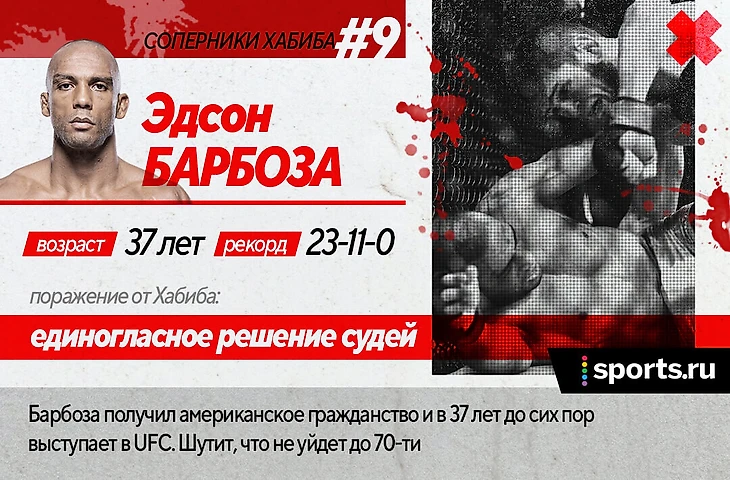 После поражения Хабибу Барбоза провел 10 боев, проиграв в шести из них. Несмотря на статус ветерана, Эдсон активен – стабильно дерется по два раза в год. При этом много времени уделяет семье (о чем постоянно рассказывает в соцсетях) и путешествует – недавно выступил с мотивационной речью перед школьниками в родной Бразилии.