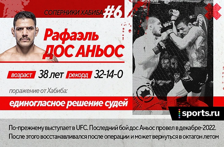 Несмотря на поражение Хабибу, Дос Аньос дошел до титульника раньше него. В главном событии UFC 185 он победил Энтони Петтиса, провел успешную защиту против Дональда Серроне и продержал чемпионский пояс 481 день. Дос Аньос выступает в UFC в 38 лет – в декабре задушил Брайана Барбарену, оформив 21-ю победу в промоушене.