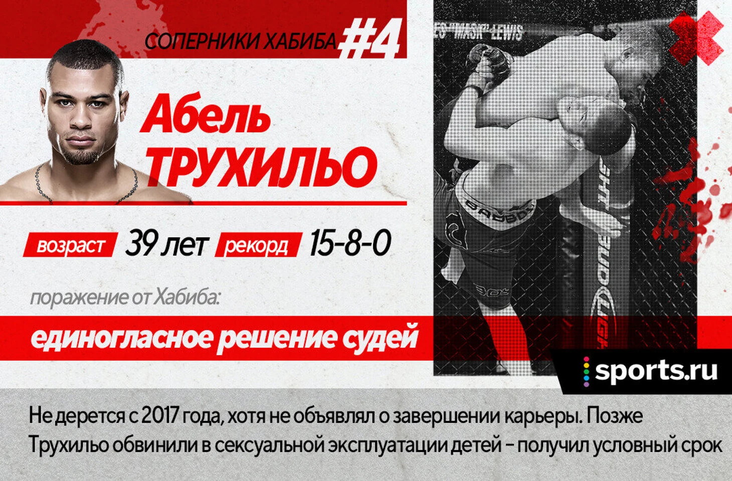 В поединке против Трухильо Нурмагомедов установил рекорд UFC по количеству проведенных тейкдаунов – перевел соперника на настил 21 раз (всего было 27 попыток). Сам Трухильо не дрался с 2017 года, но о завершении карьеры не объявлял – настоящей причиной длительного простоя стал арест.