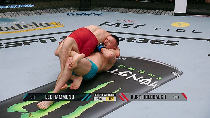 В новом эпизоде The Ultimate Fighter встретились фаворит Конора Ли Хаммонд и экс-боец UFC Курт Холобау (0-3 в UFC) из команды Чендлера. Хаммонд, воспитанник Джона Каваны и главная молодая звезда ирландских ММА, доминировал весь бой. Он был лучше оппонента в стойке и партере, но в конце второго раунда неожиданно отдал позицию сверху и позволил Холобау провести гильотину.