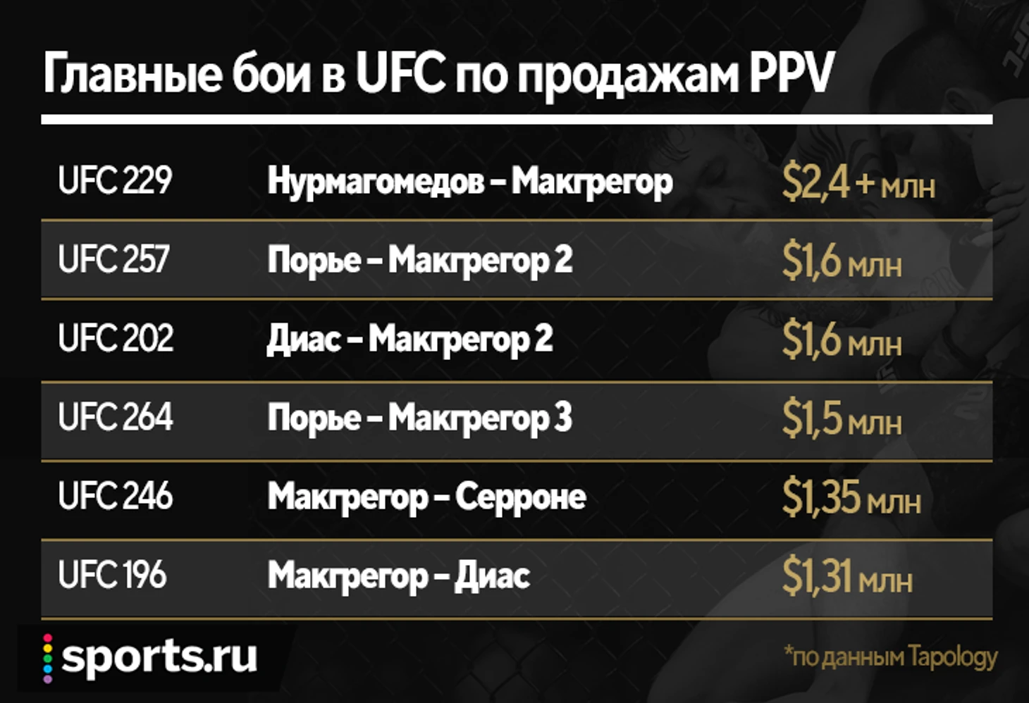 UFC 229 собрал больше 2,4 млн PPV [платные трансляции] – лучший показатель в истории.