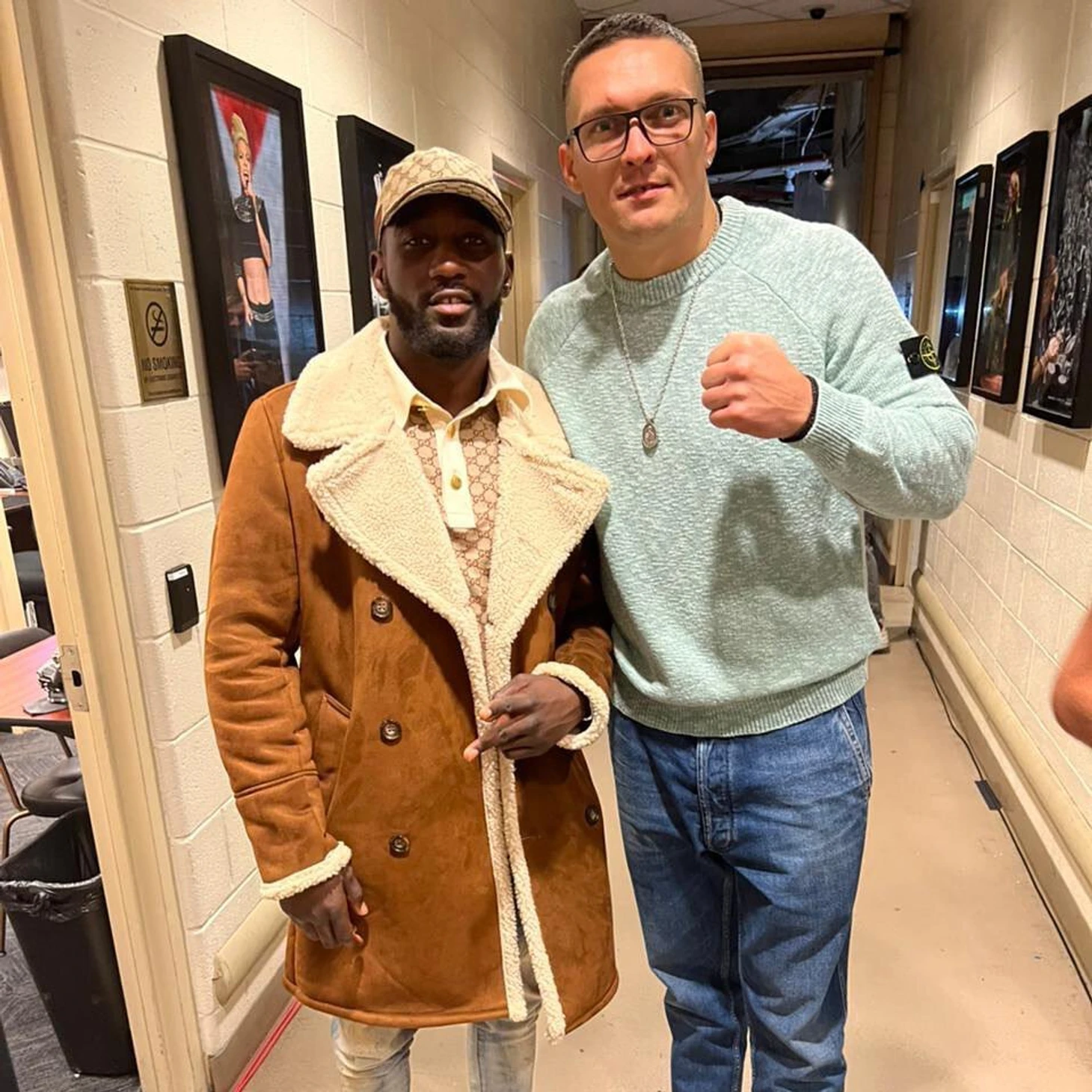 • К декабрю волосы подросли, а к внешнему виду добавились очки. Совместное фото с Теренсом Кроуфордом: