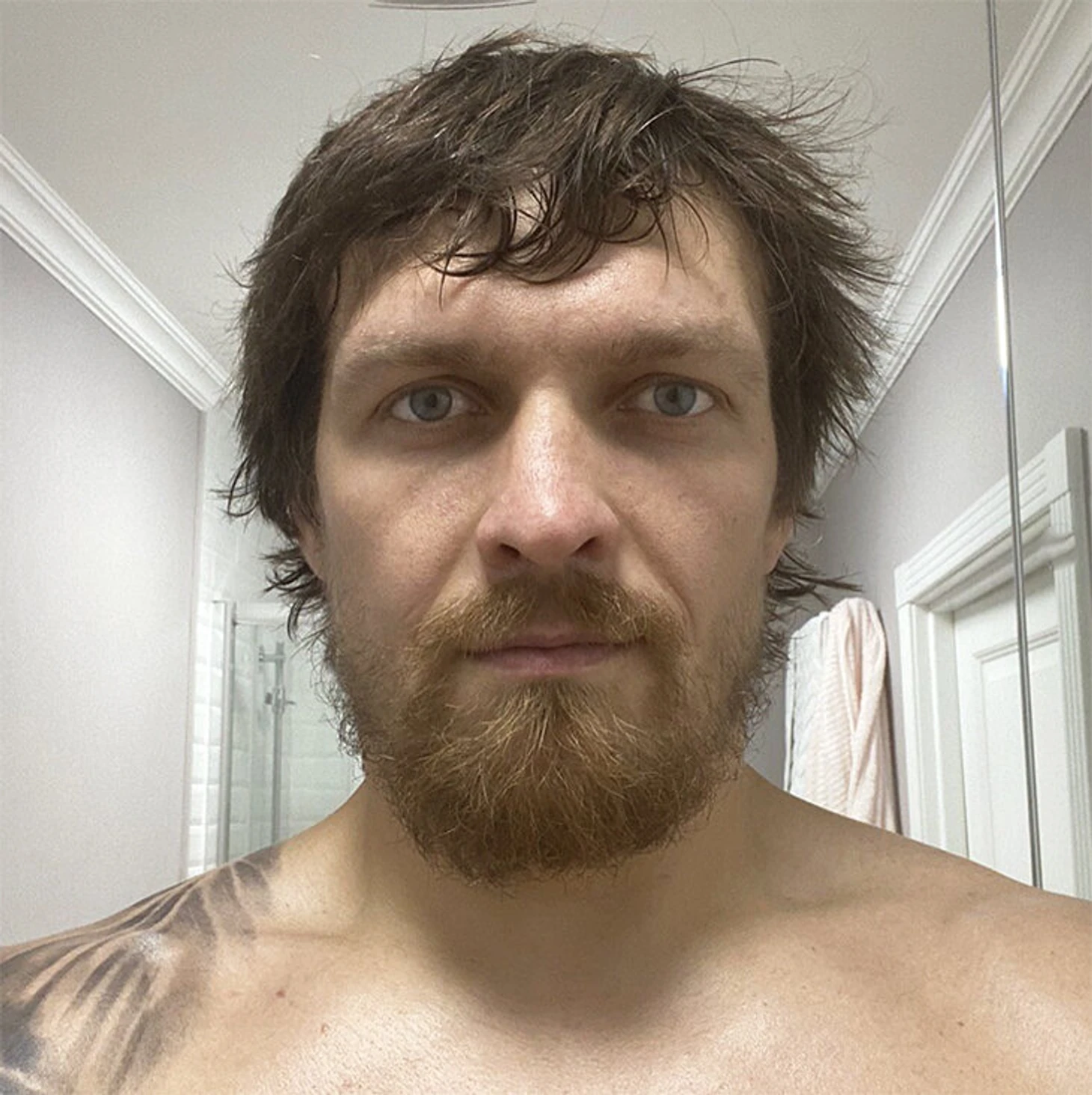 • Полностью лысая голова в сентябре-2021 перед первым боем против Энтони Джошуа:
