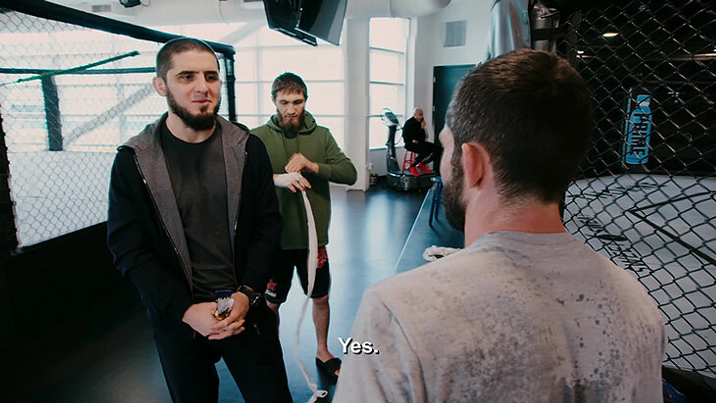 2. Явление Махачева - это, блин, сплошное расстройство. Ну типа ты появился на шоу, хотел прокачать медийку и рейтинги, но ты стоишь чуть ли не по стойке смирно и... ешь орешки. Блин, ну реально абрек абреком((