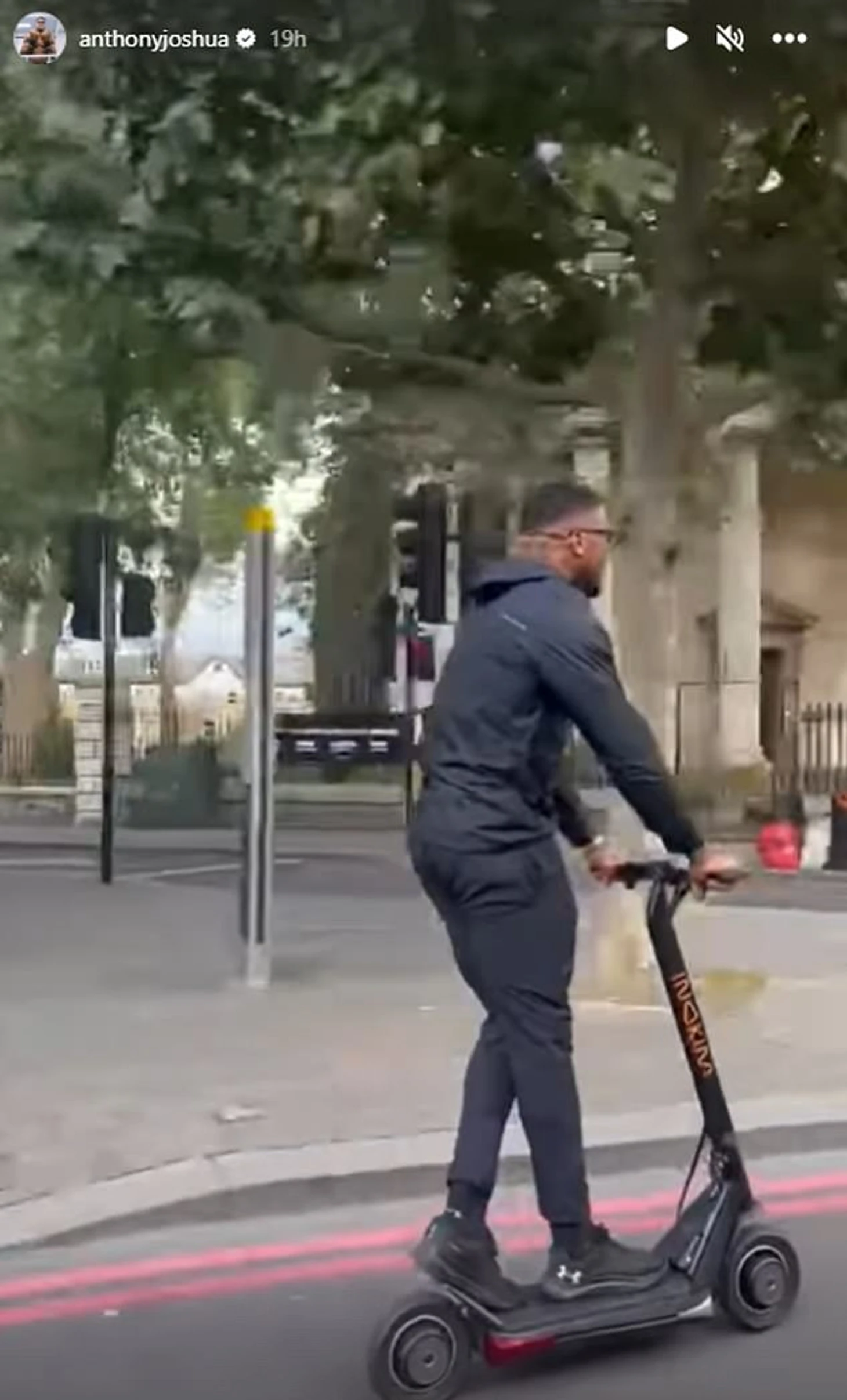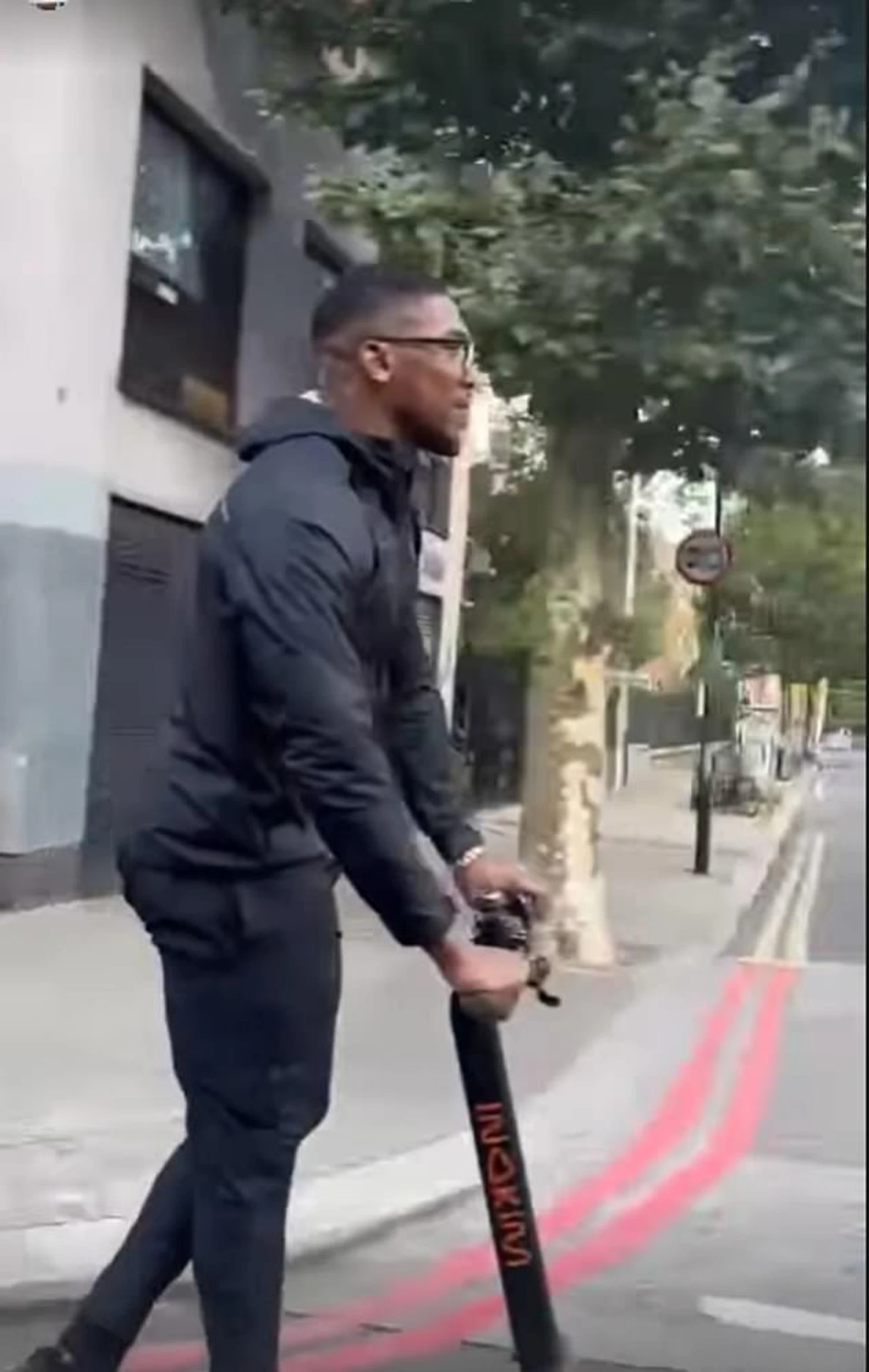 Британский боксер Энтони Джошуа был замечен на электросамокате в Лондоне.
