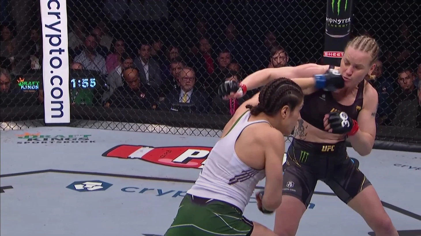 Но факт ключевых промахов остается. Помимо уже рассмотренной выше ошибки в первом поединке против Сантос, когда Шевченко слишком агрессивно пошла на сложный для выполнения тейкдаун, были и другие моменты.