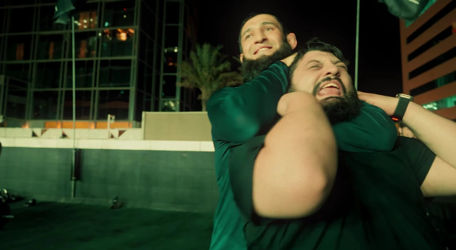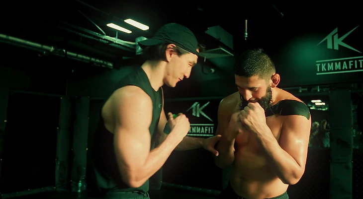 Визит комиков в Абу-Даби закончился совместной тренировкой с Чимаевым. Боец провел спарринг с Сабуровым, а потом проверил партер Масаева – Тамби высоко оценил навыки борьбы Хамзата: «Просто лежишь и понимаешь, что подняться невозможно. Похоже на утро, когда нужно встать с постели и скинуть тяжелое одеяло. Это практически то же самое».