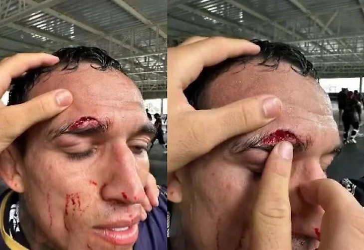 Сообщается, что Оливейра получил рассечение над бровью. Чуть позже бразилец сам показал свою травму. Осторожно, кадры не для слабонервных.