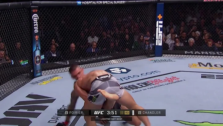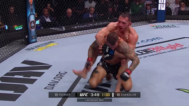 Майкл Чендлер сделал амплитудный бросок и сразу после него пытается забрать спину Дастина Порье