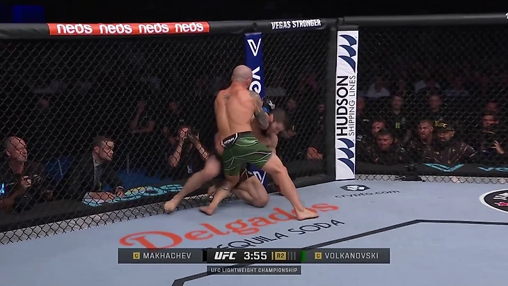 До поединка Волкановски говорил: «Даже если он уложит меня, я сразу же встану». Можно сказать, что у него получилось. За исключением двух моментов, когда Волкановски отдавал спину, у Махачева было лишь 2:08 минуты контроля с двух тейкдаунов. Нужно понимать, что на UFCStats учитывается время контроля и в клинче, и в партере, поэтому в реальности это время было еще меньше.