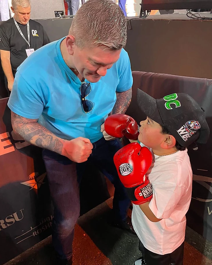 Но у него очень много сторис, где стоит с Пакьяо, Котто, Дюраном, Леонардом, Насимом Хамедом, Криштиану Роналду и даже известным тиктокером Хаби Леймом.