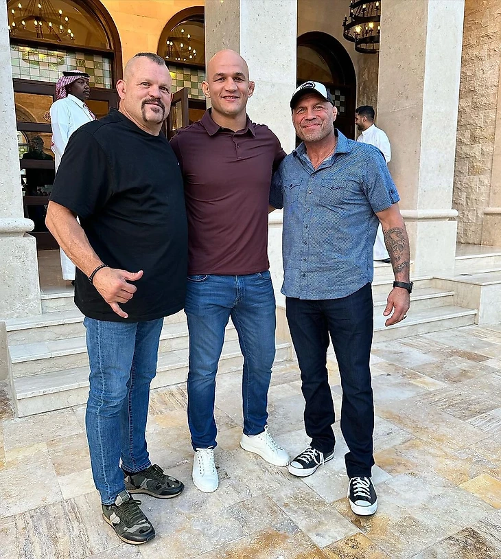 Джуниор Дос Сантос не отставал от Адесаньи и сфотографировался с Усиком, Роналдо и Нганну. Без легенд ММА Чака Лидделла и Рэнди Кутюра не обошлось.