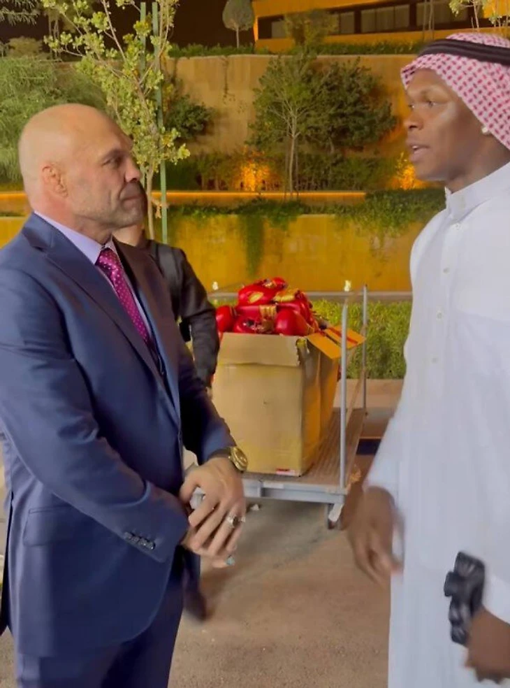 В Эр-Рияд приехала небольшая группа звезд UFC: Исраэль Адесанья, Джуниор дос Сантос, Чак Лидделл, Рэнди Кутюр, Камару Усман и Рэмпейдж Джексон. Но самым активным был Адесанья. Он сидел за одним столом с Куинтоном Джексоном и опубликовал совместное фото с Леонардом, Дюраном, Роем Джонсом и Джуниором Дос Сантосом.