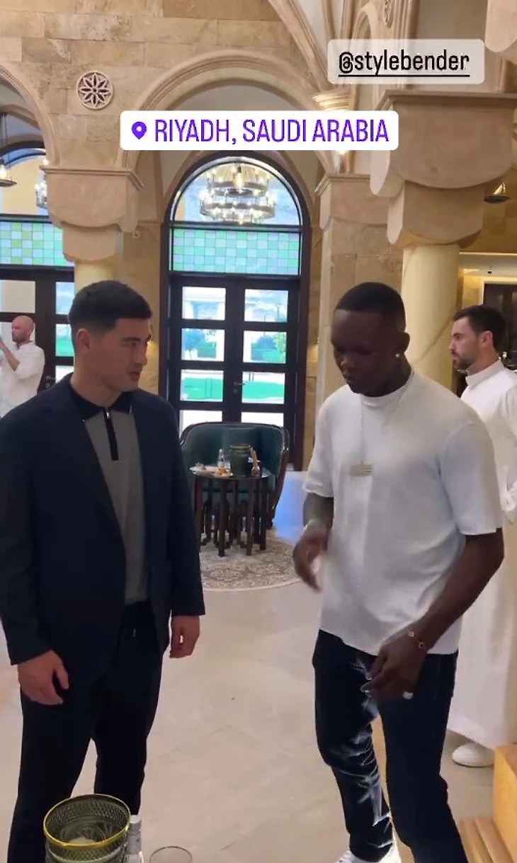 Бивол пообщался с экс-чемпионом UFC Исраэлем Адесаньей. Адесанья восхитился работой Бивола в челноке, после чего пожал ему руку.