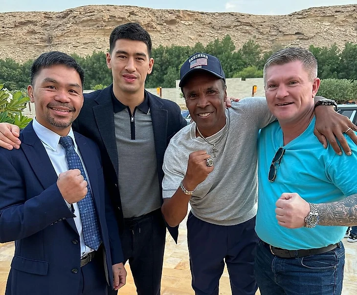 В Саудовскую Аравию прибыли легенды 80-х Шугар Рэй Леонард и Роберто Дюран. С ними – великие мексиканцы Марко Антонио Баррера и Эрик Моралес. Но на фото чаще всех мелькал чемпион мира в восьми весовых категориях Мэнни Пакьяо.