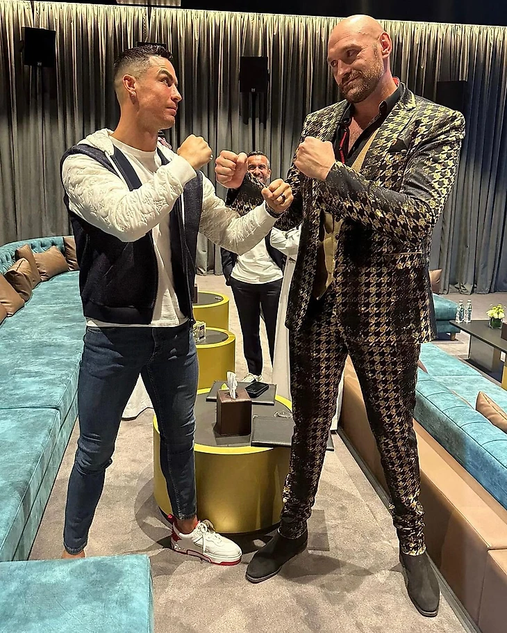 Еще Фьюри поймали вместе с Криштиану Роналду. «Криштиану, ты величайший футболист, который когда-либо жил. Я твой большой фанат. Все время слежу за твоей игрой. Наблюдал за тобой в «МЮ», когда ты играл за него в первый раз и после возвращения, в «Реале» тоже», – сказал Фьюри в личной беседе с футболистом.