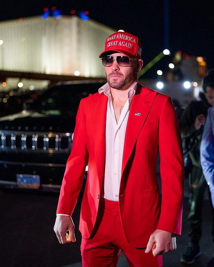 На стадионе присутствует Дональд Трамп, который даже что-то пожелал Колби перед боем
