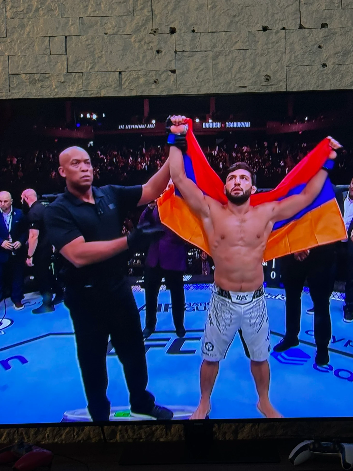 И когда рефери объявил о победе Царукяна, он стоял в октагоне в армянским флагом на плечах.
