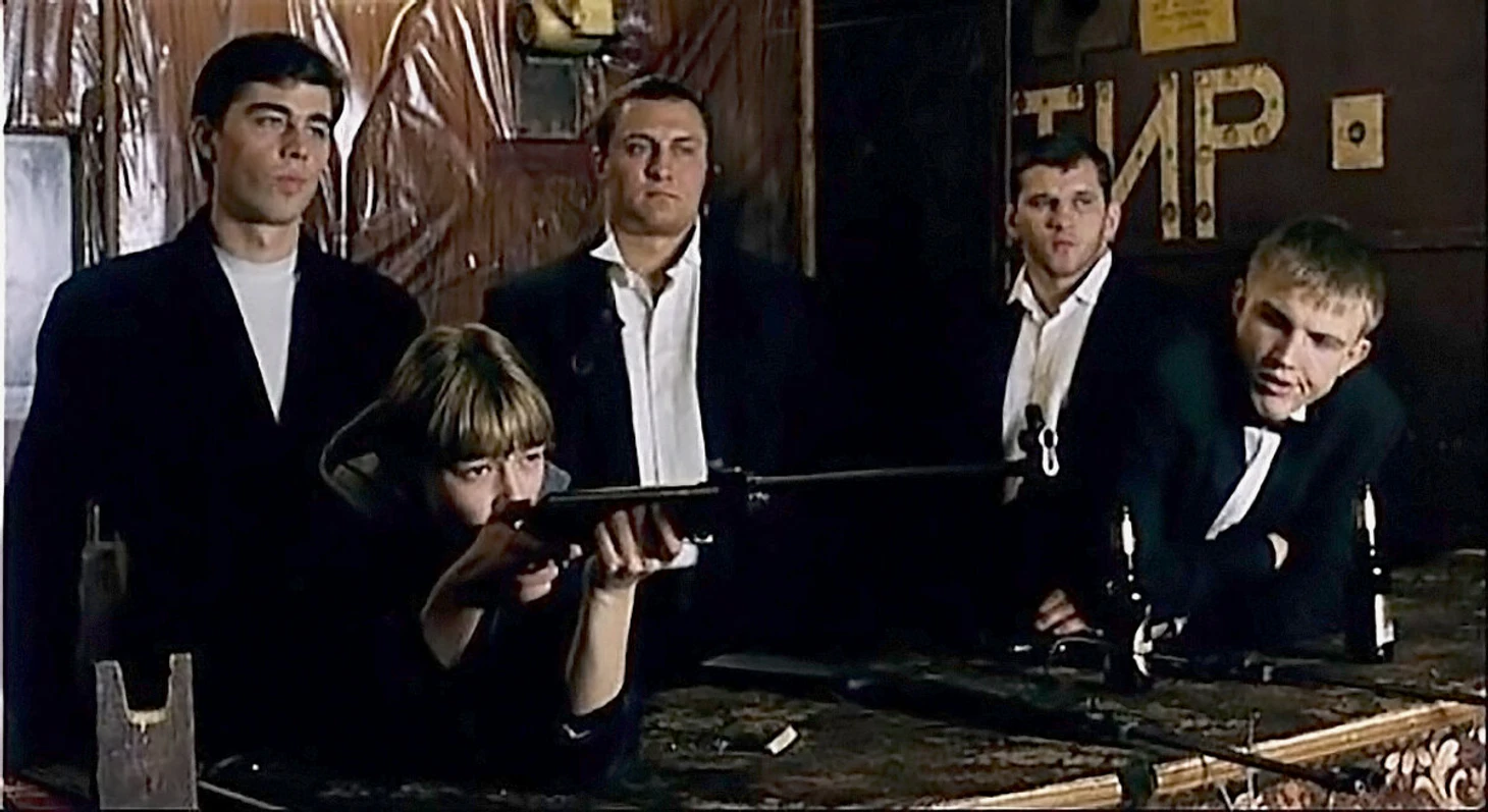 Для нас больший интерес представляет компания парня из джипа - крепкие спортивные ребята, готовые решить любую проблему. А эта компания - настоящий пантеон российских героев ранних смешанных единоборств. Молодого человека, скептически наблюдающего за стрельбой Оксаны Акиньшиной (на фото крайний справа) сыграл Андрей Семёнов также известный как Белая Акула .Атлетичный мужчина, стоящий на фотографии непосредственно рядом с Сергеем Бодровым, - Роман Зенцов. Роман, он же Русский Молот, тренировался вместе с Фёдором Емельяненко и дрался в японском Прайде. За свою карьеру Зенцов отправлял в нокауты ветерана UFC Педро Риззо и самого «грязного» бойца за всю историю смешанных единоборств Гилберта Айвела. Наконец третий участник группы поддержки парня из джипа - это Станислав Нущик. Достижения Станислава впечатляют - мастер спорта по дзюдо, чемпион Евразии по рукопашному бою, чемпион мира по боям без правилам (были и такие титулы), многократный чемпион Ленинградского военного округа по боям без правил.