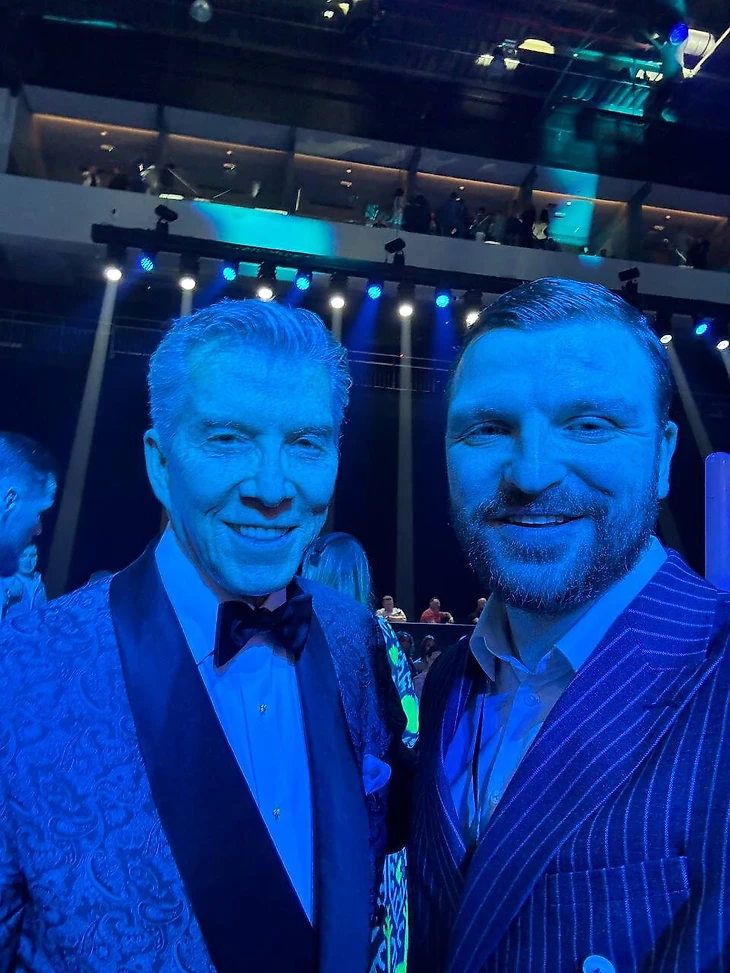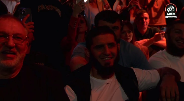 В зале собралось много селебрити из бойцовского мира. Например, приехали российские ветераны: Александр Поветкин, Денис Лебедев и Константин Цзю.