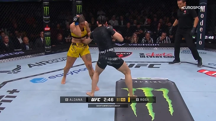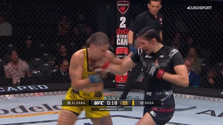 Боксерские навыки Альданы действительно впечатляют. Невероятно и то, что она сохранила подвижность, хотя Роза побила рекорд UFC по точным ударам ногами (95). На двоих Альдана и Роза установили новый рекорд дивизиона по значимым ударам (349) и заслужили стоячую овацию от фанатов, которые стали свидетелями этой рубки (бой тоже поставили в прелимы).