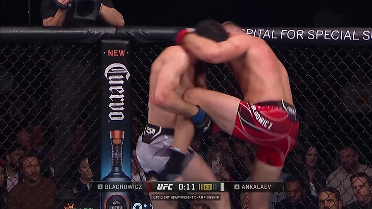 Анкалаев вытягивает Блаховича на себя и в этот момент вставляет руку