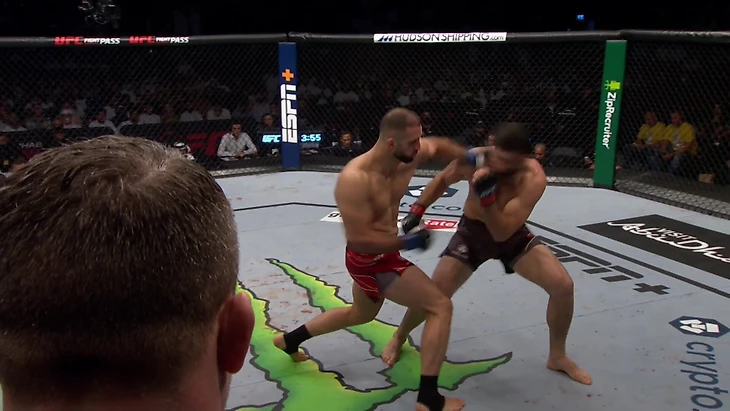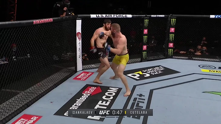 Борьба Анкалаева похожа на его ударку – аккуратная, уверенная и часто слишком безопасная. В среднем он совершает 1,07 тейкдауна за 15 минут с 31% успешных. При этом у него все равно большое количество времени в контроле (на сайте UFC указано 44:23, но часть из этого – в клинче), но нет ни одной попытки сабмишена.