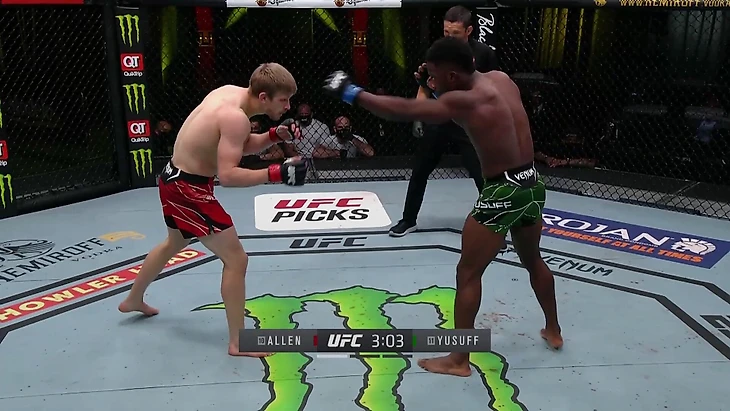 Соперник Мовсара Евлоева – Арнольд Аллен, физически очень мощный ударник с неплохой защитой от борьбы и сабмишенами. В прошлом поединке он дрался с Максом Холлоуэем и проиграл впервые за 12 боев. Холлоуэй победил за счет лучшей точности и большего объема ударов. Аллен никак не мог поймать соперника по-настоящему сильными ударами и нанес существенный урон лишь в последнем раунде.