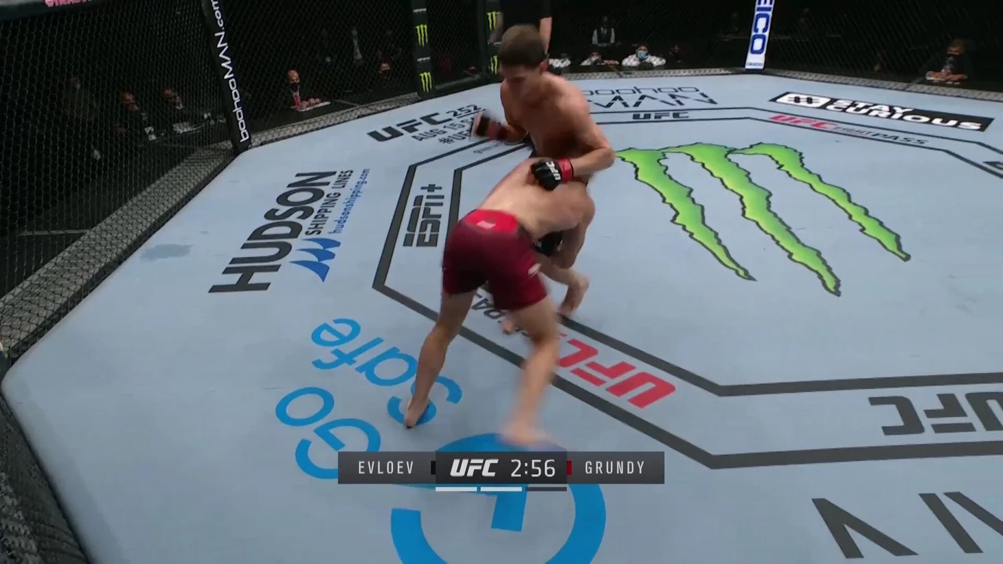 Статистика собственных тейкдаунов у Евлоева впечатляет намного больше: 50% – точность, 4,71 тейкдауна в среднем за 15 минут. Он достигает такой активности благодаря умным и точным переходам из ударки в борьбу, постоянному прессингу и просто невероятному кардио, которое позволяет не выдыхаться после целых раундов в борьбе.