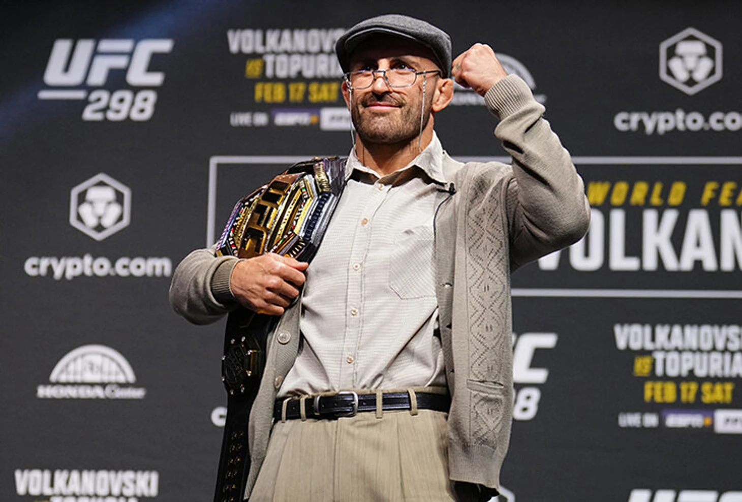 На пресс-конференцию перед UFC 298 Волкановски пришел в образе старика: винтажный кардиган, очки для зрения, сутулая походка. Он впервые примерил образ в смешном промо-видео. Там Волкановски изображал стереотипного пенсионера, иронизируя над теми, кто считает его стариком.