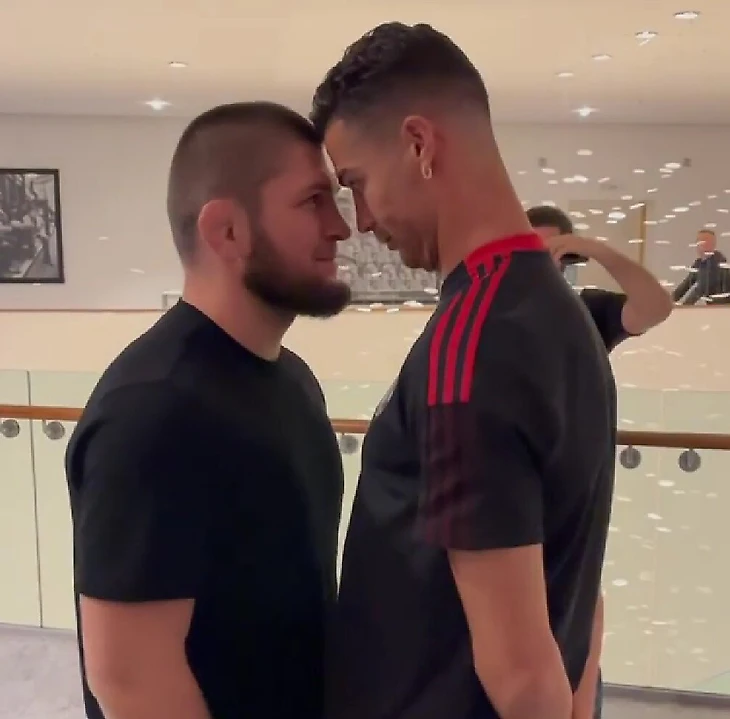 Еще одна встреча произошла, когда Роналду выступал уже за «Манчестер Юнайтед». Сначала Роналду попытался провести Хабибу тейкдаун, а потом они устроили стердаун. Все завершилось улыбками и дружескими объятиями.