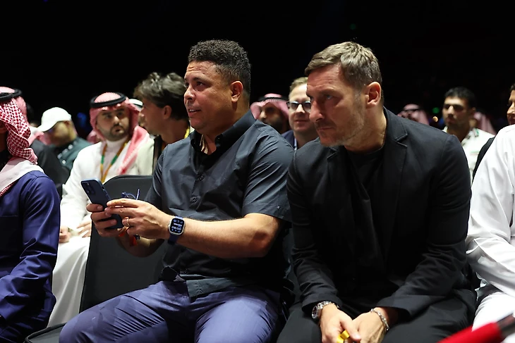 • Примерно так же за боями следила другая футбольная легенда – Франческо Тотти, который сидел рядом с Роналдо.