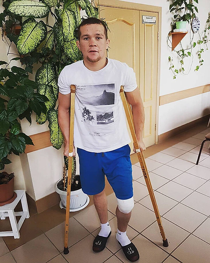 «В первом раунде я сам попал лодыжкой ему в кость, сразу почувствовал, что что-то не так. Там либо трещина, либо потянул. До сих пор нога опухшая, наступать больно. Потом он по второй ноге пробил жестко, попал куда-то в связки. Заметил, наверное, мне пришлось отскакать на одной ножке, поменять стойку».
