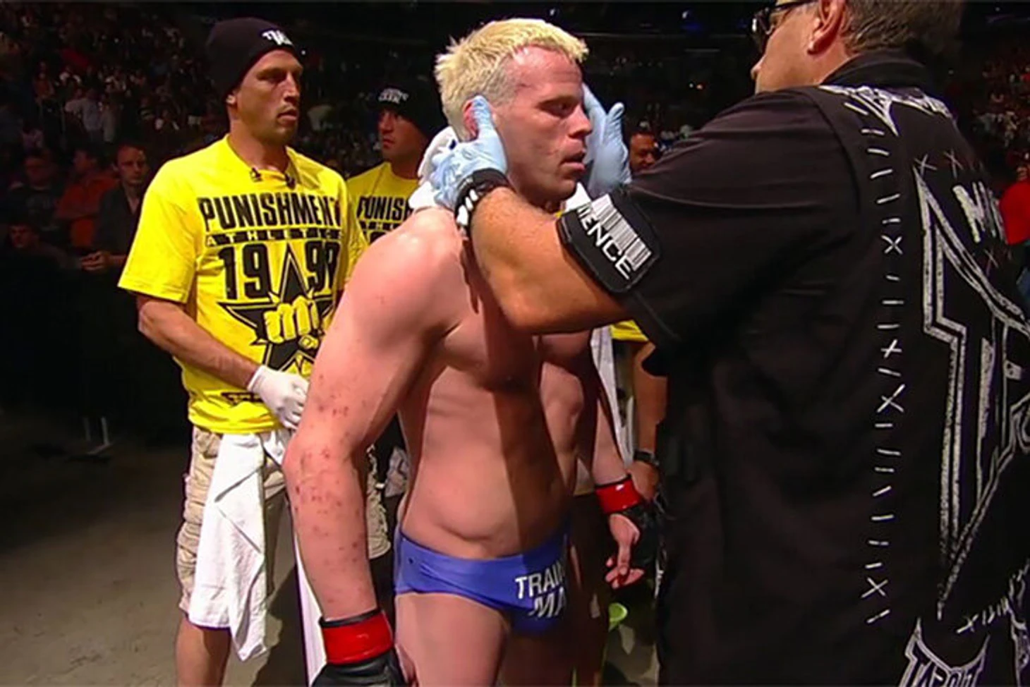 Холлман проиграл спор и вышел на бой в брифах – после этого в UFC забанили короткие шорты