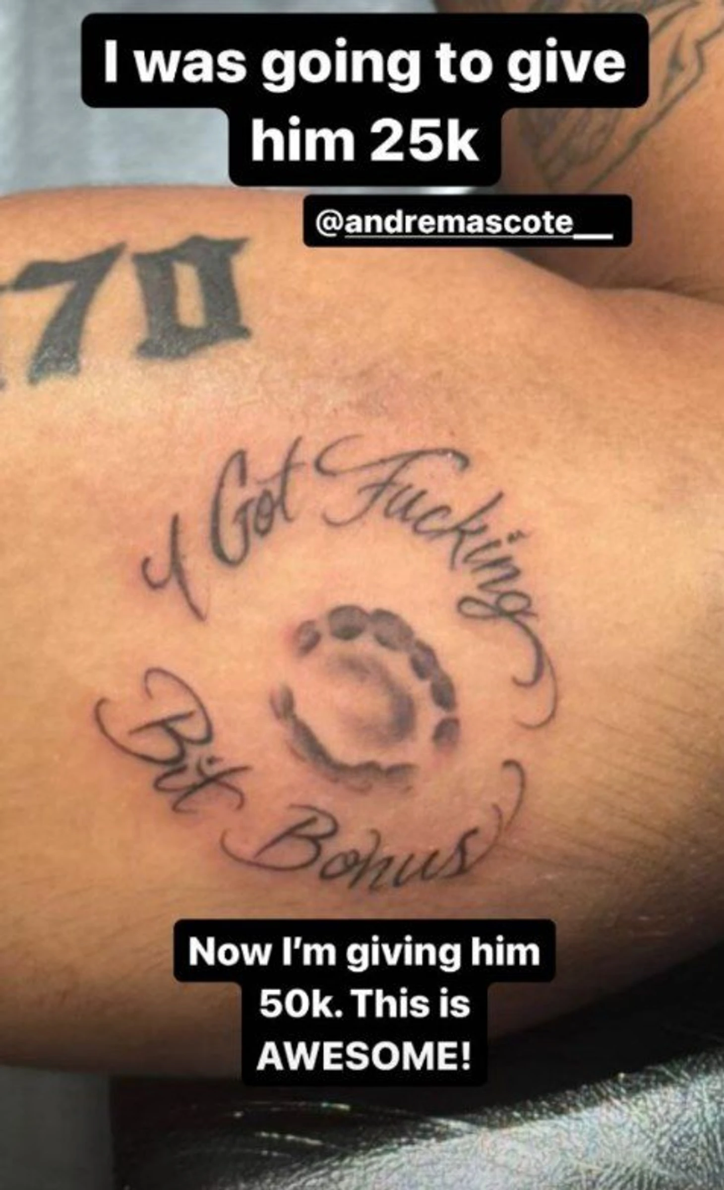 «Я хотел дать ему $25 тысяч, но теперь дам 50», – отреагировал Уайт на тату, а пресс-служба зафиксировала этот момент как «укус вечера».