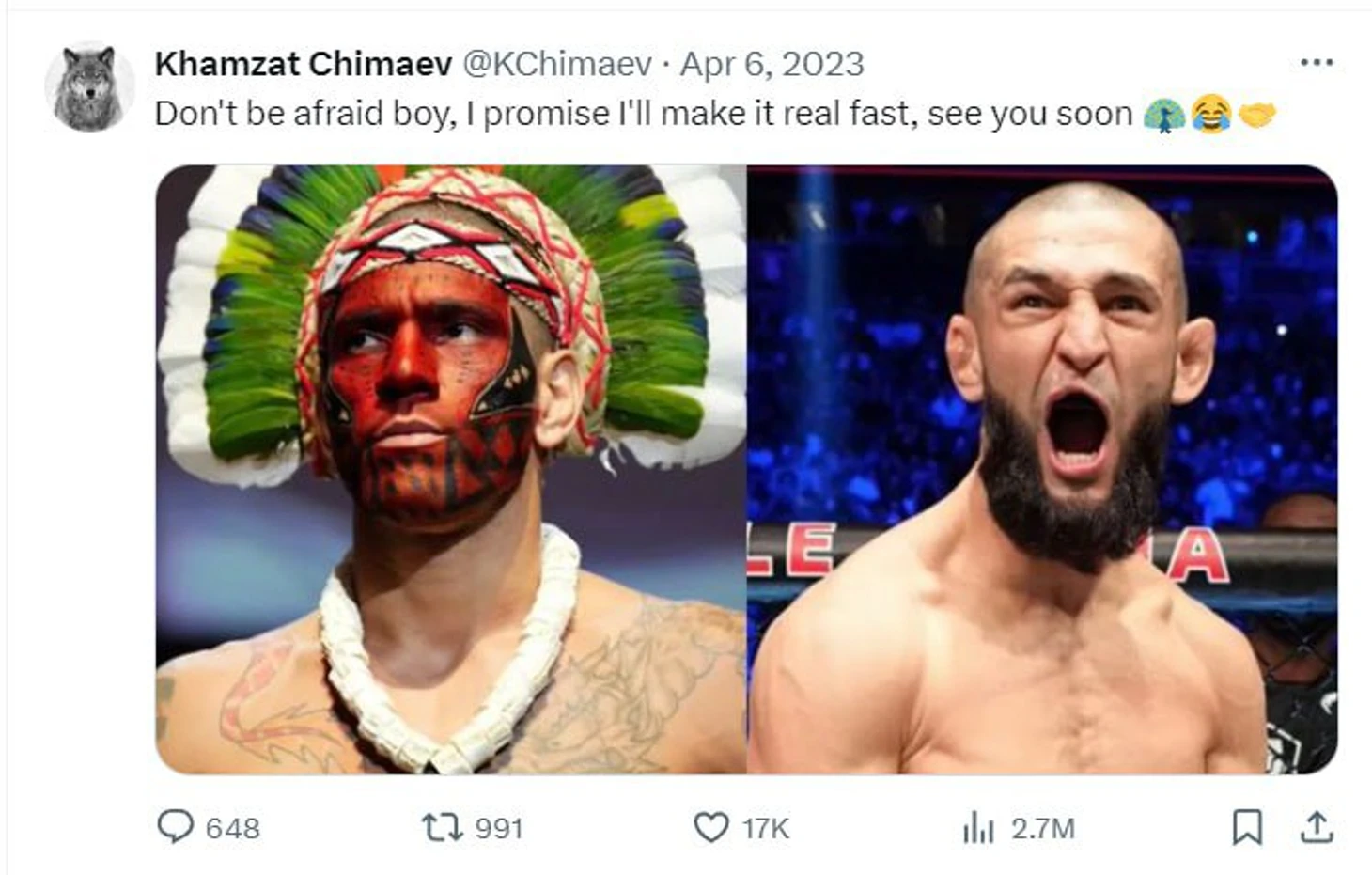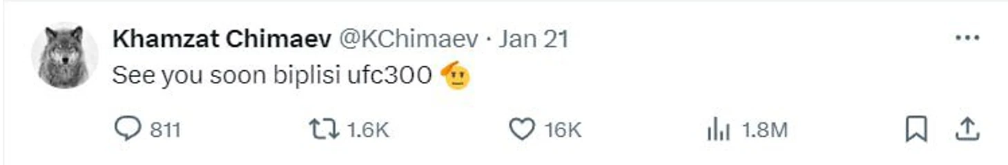 За четыре года в UFC Чимаев до сих пор так и не получил бой против действующего чемпиона. При этом как минимум пять раз вызывал действующих обладателей пояса, пользуясь одной и той же фразой – «see you soon» («скоро увидимся»):