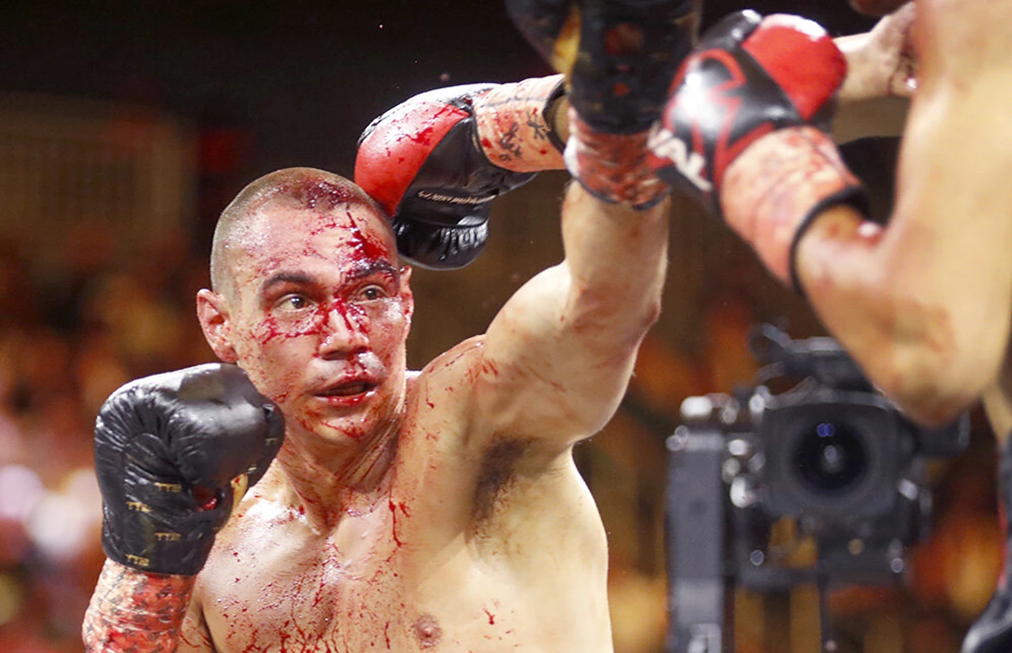 Главный момент – сечка на лбу, которую Цзю получил во втором раунде после случайного попадания локтем. Кровь заливала лицо весь бой и перекрывала видимость. Жесткое зрелище:
