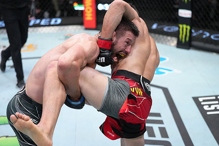 Проблема Царукяна в том же, в чем и сила. Он хорош во всех компонентах (кроме, возможно, сабмишенов), но нет ни одного аспекта ММА, в котором он лучший. Несмотря на звание мастера спорта по вольной борьбе, даже его проходы не супертоп. У Матеуша Гамрота большее количество успешных тейкдаунов (5,28 против 3,4 у Царукяна) и сравнимая точность (35% против 36%).