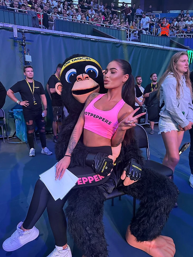 Ну и, понятно, что само присутствие на бойцовых мероприятиях, в качестве одного из главных действующих лиц, такой вот профессионально порочной красоты, привлекает дополнительное внимание и облагораживает весь этот мир насилия.