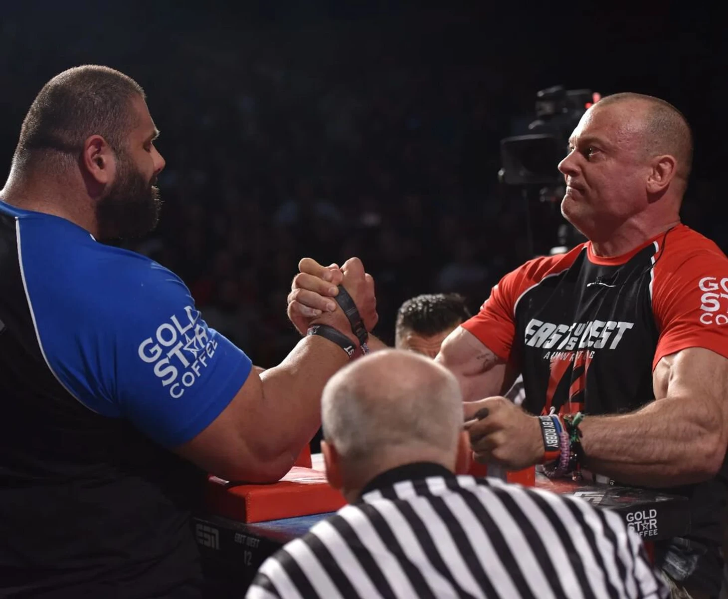 Рык в зал и схватка двух гигантов под 300 кг на двоих – я сходил на армрестлинг и кайфанул