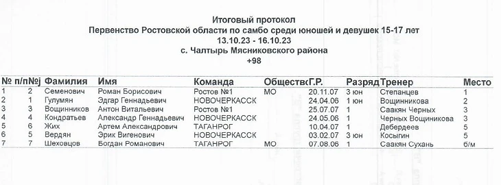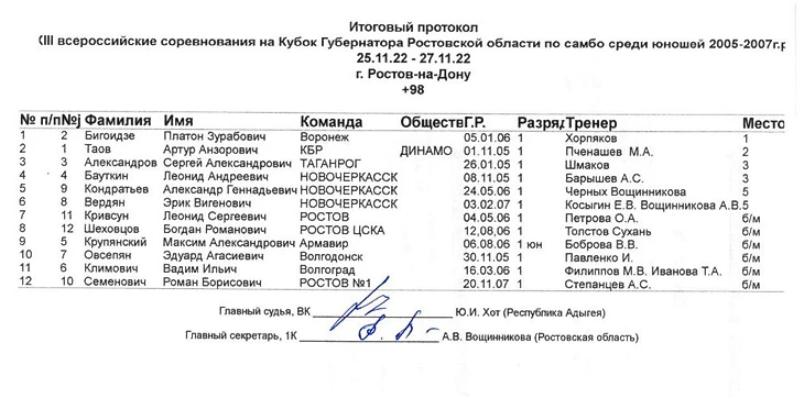 Вот его результаты на Кубке губернатора Ростовской области по самбо в 2022 году: