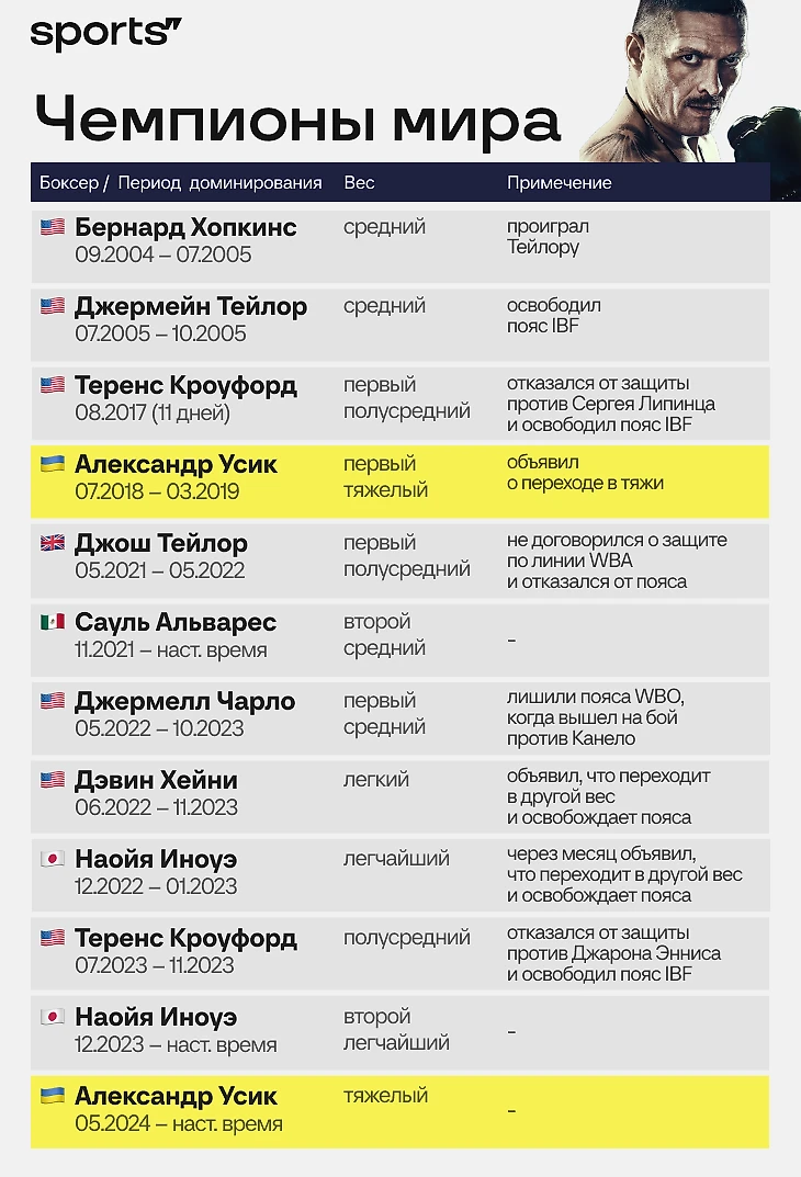 Усик – магнит для поясов: 12-й абсолютный чемпион и третий, кто сделал это в двух весах