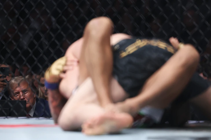 Там Трамп прошел перед трибунами в сопровождении Даны Уайта – на трибунах даже появился баннер в его поддержку, а фанаты кричали: «К черту Джо Байдена». После поединков сразу несколько бойцов вышли за клетку, чтобы пожать ему руку – например, Шон Стрикленд и Кевин Холланд.