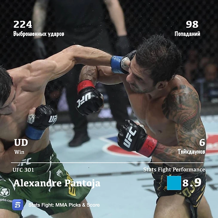 Pantoja Alexandre на UFC 301, который прошел 5 мая в Бразилии. Stats Fight Perfomance – 8,9
