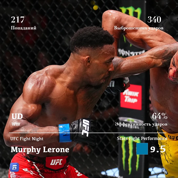 Лидер мая стал Murphy Lerone и его победа на UFC Fight Night 18 мая. Stats Fight Perfomance его выступления составила 9,5