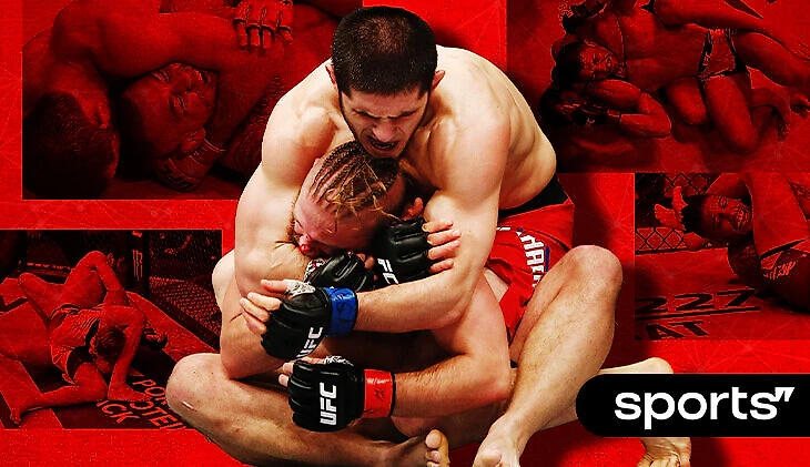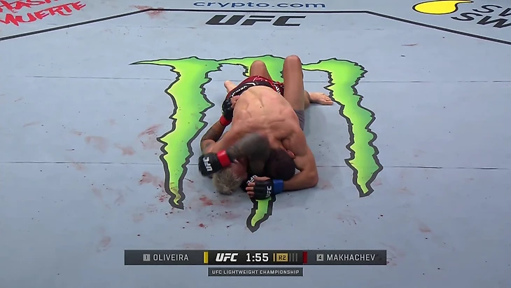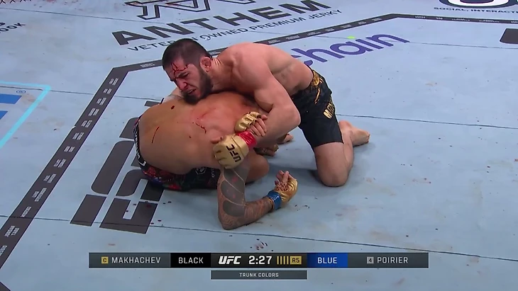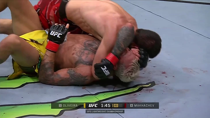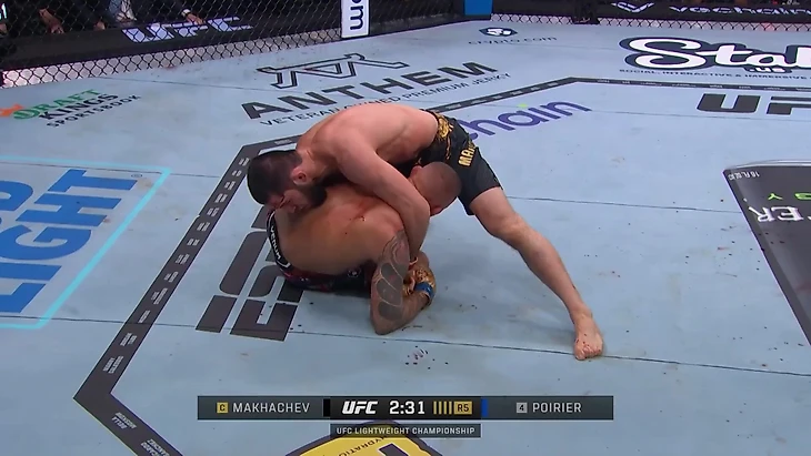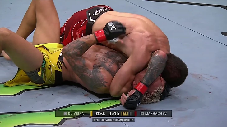 Махачев находится в «распятии» – одной из самых односторонних и доминирующих позиций в ММА