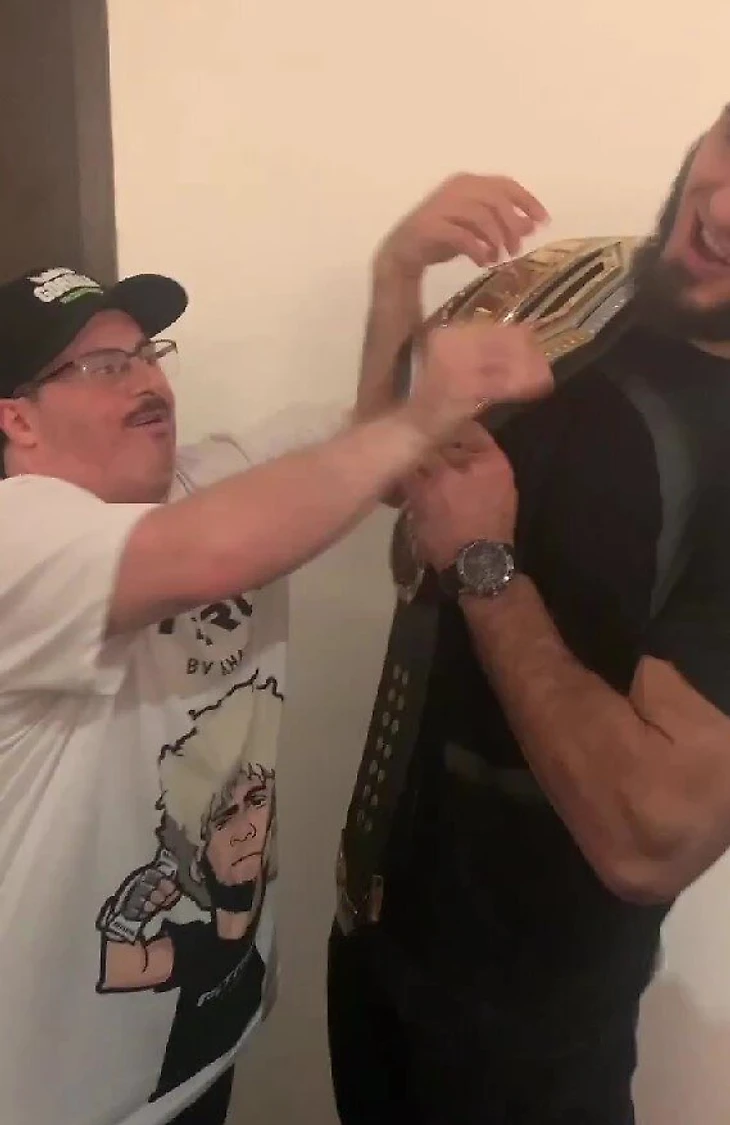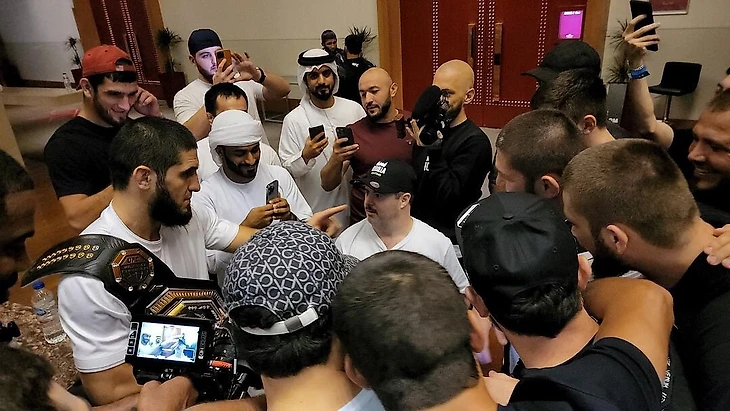 Раджаб поздравлял Махачева с победой над Оливейрой (даже провел отдельную церемонию) и спецэффектно встречал после первого боя с Алексом Волкановски.